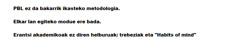 Adibidea 1.url Adibideak 1.PNG Adibideak 2.PNG Adibideak 3.PNG Adibideak 4.PNG Atal praktikoa.cmap Beasain BHI, abenduaren 15ean.cmap Bigarren Hezkuntza.cmap Definizioa.jpg Elkarrizketa.url Eremuak.jpg Galderak.PNG Habits of mind.jpg Hasiera.jpg Irizpideak.PNG Kolaborazioa.PNG Moodle POA.url Other outcomes.png PBL.cmap PBL1.cmap Proiektua.jpg Rubistar.url Rubrika txuriz.PNG Saioaren zergatia.cmap Trebeziak.PNG Webquest.url Zenbait teknika.doc Zergatik POA.cmap