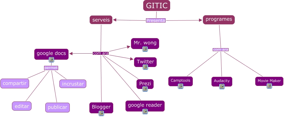 Este Cmap, tiene información relacionada con: mapa isa, programes com ara Movie Maker, google docs permet publicar, serveis com ara Mr. wong, programes com ara Audacity, programes com ara Camptools, serveis com ara google reader, google docs permet compartir, serveis com ara Prezi, serveis com ara Blogger, serveis com ara Twitter, google docs permet editar, google docs permet incrustar, serveis com ara google docs, GITIC Presenta serveis, GITIC Presenta programes