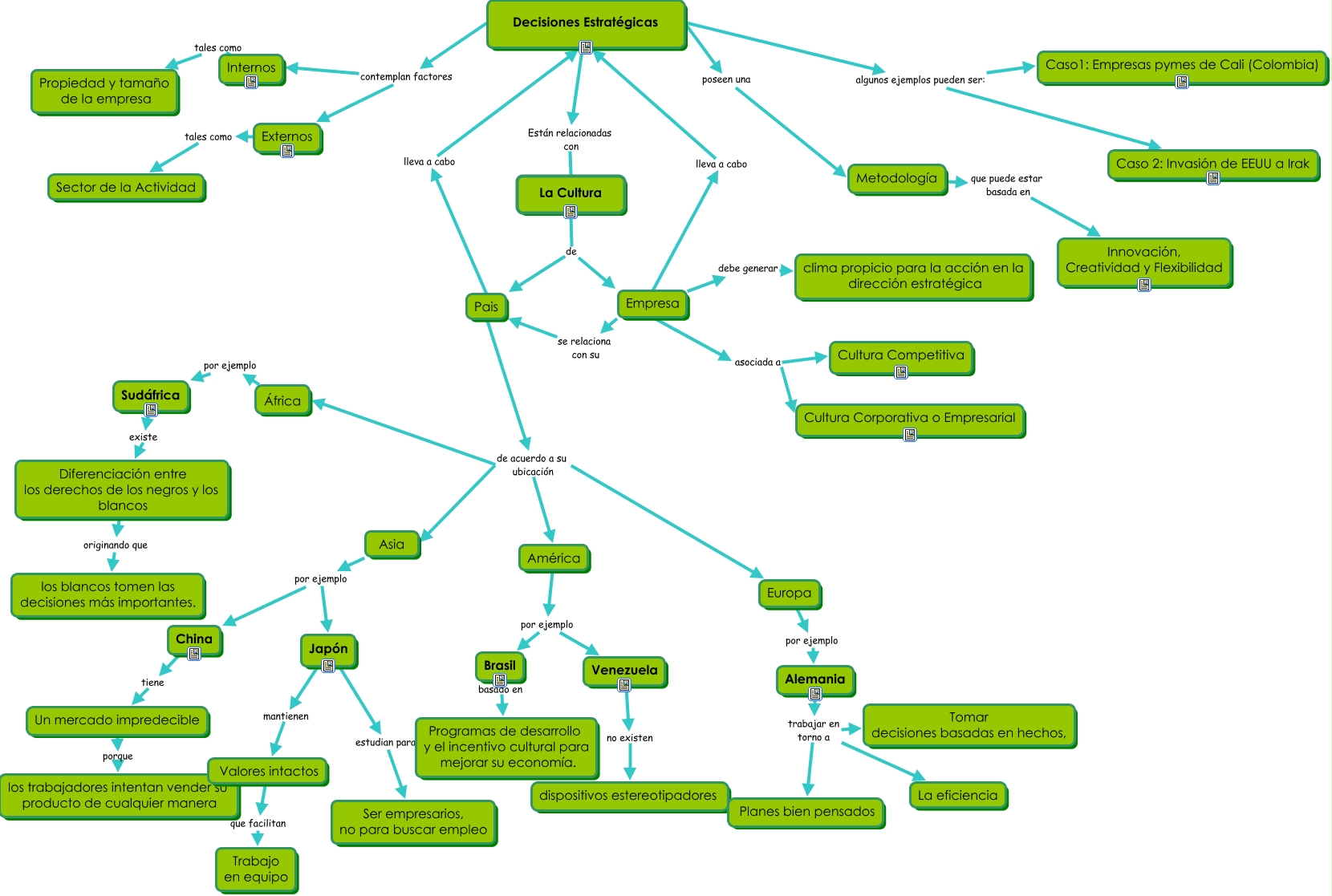 Este Cmap, tiene información relacionada con: MARJORIE, Decisiones Estratégicas algunos ejemplos pueden ser: Caso1: Empresas pymes de Cali (Colombia), Pais lleva a cabo Decisiones Estratégicas, Asia por ejemplo Japón, Empresa asociada a Cultura Corporativa o Empresarial, Metodología que puede estar basada en Innovación, Creatividad y Flexibilidad, Japón mantienen Valores intactos, Internos tales como Propiedad y tamaño de la empresa, América por ejemplo Brasil, Pais de acuerdo a su ubicación América, Decisiones Estratégicas poseen una Metodología, Empresa asociada a Cultura Competitiva, Japón estudian para Ser empresarios, no para buscar empleo, Europa por ejemplo Alemania, Decisiones Estratégicas algunos ejemplos pueden ser: Caso 2: Invasión de EEUU a Irak, Externos tales como Sector de la Actividad, Valores intactos que facilitan Trabajo en equipo, Sudáfrica existe Diferenciación entre los derechos de los negros y los blancos, Decisiones Estratégicas contemplan factores Internos, La Cultura de Empresa, La Cultura de Pais