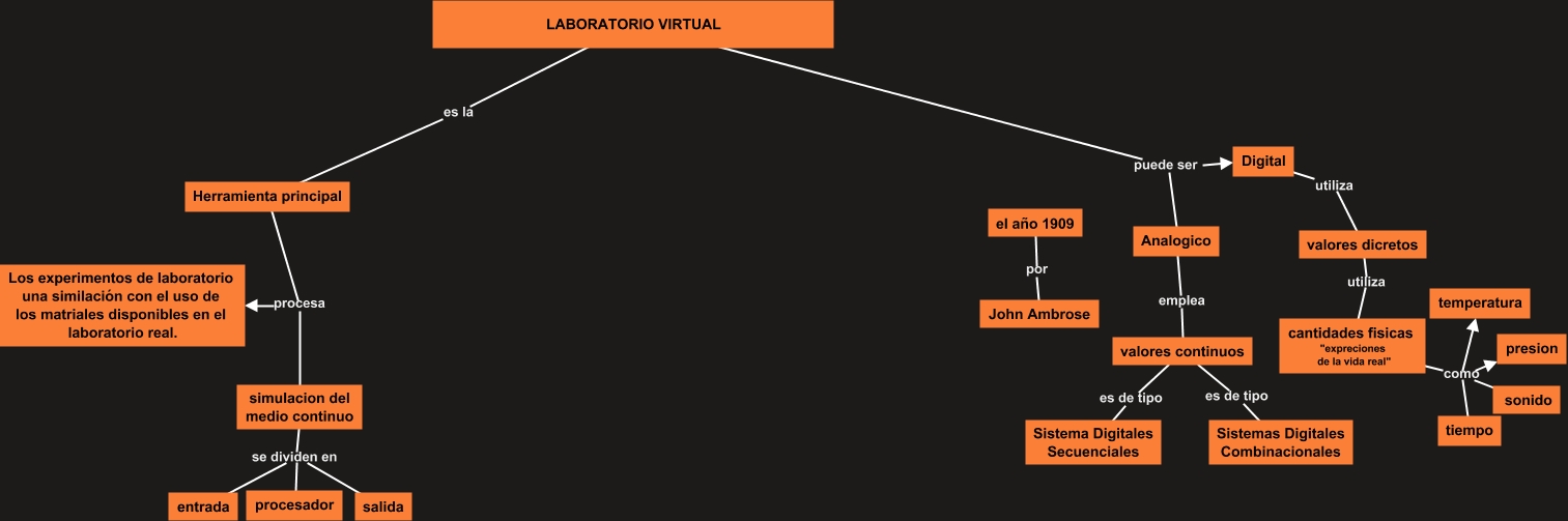 Este Cmap, tiene información relacionada con: electronica 2, LABORATORIO VIRTUAL es la Herramienta principal, valores dicretos utiliza cantidades fisicas "expreciones de la vida real", cantidades fisicas "expreciones de la vida real" como tiempo, LABORATORIO VIRTUAL puede ser Analogico, valores continuos es de tipo Sistema Digitales Secuenciales, Herramienta principal procesa simulacion del medio continuo, cantidades fisicas "expreciones de la vida real" como presion, cantidades fisicas "expreciones de la vida real" como temperatura, simulacion del medio continuo se dividen en salida, Analogico emplea valores continuos, simulacion del medio continuo se dividen en procesador, LABORATORIO VIRTUAL puede ser Digital, Herramienta principal procesa Los experimentos de laboratorio una similación con el uso de los matriales disponibles en el laboratorio real., cantidades fisicas "expreciones de la vida real" como sonido, simulacion del medio continuo se dividen en entrada, Digital utiliza valores dicretos, valores continuos es de tipo Sistemas Digitales Combinacionales, el año 1909 por John Ambrose