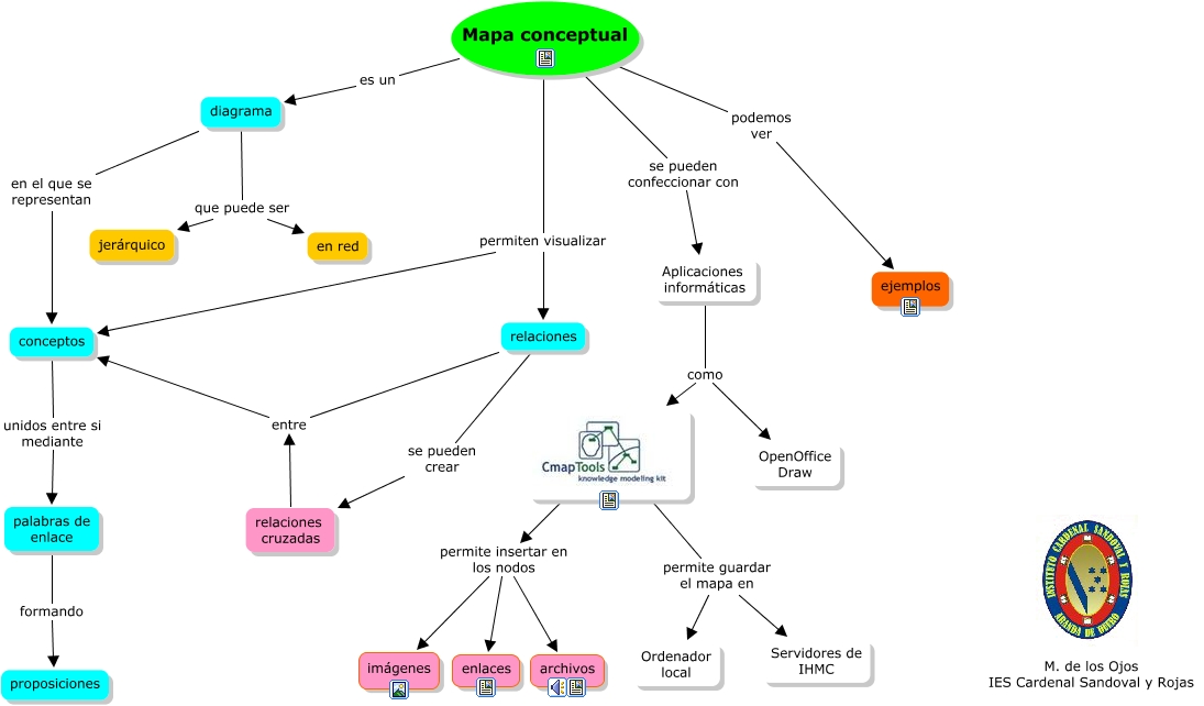 Este Cmap, tiene información relacionada con: Mapa conceptual, Mapa conceptual se pueden confeccionar con Aplicaciones informáticas, diagrama que puede ser jerárquico, Mapa conceptual ???? M. de los Ojos IES Cardenal Sandoval y Rojas, relaciones entre conceptos, permite guardar el mapa en Servidores de IHMC, Mapa conceptual es un diagrama, Mapa conceptual permiten visualizar conceptos, diagrama que puede ser en red, relaciones se pueden crear relaciones cruzadas, Aplicaciones informáticas como OpenOffice Draw, Mapa conceptual podemos ver ejemplos, Mapa conceptual permiten visualizar relaciones, relaciones cruzadas entre conceptos, diagrama en el que se representan conceptos, Aplicaciones informáticas como, permite insertar en los nodos archivos, permite insertar en los nodos enlaces, permite guardar el mapa en Ordenador local, conceptos unidos entre si mediante palabras de enlace, palabras de enlace formando proposiciones