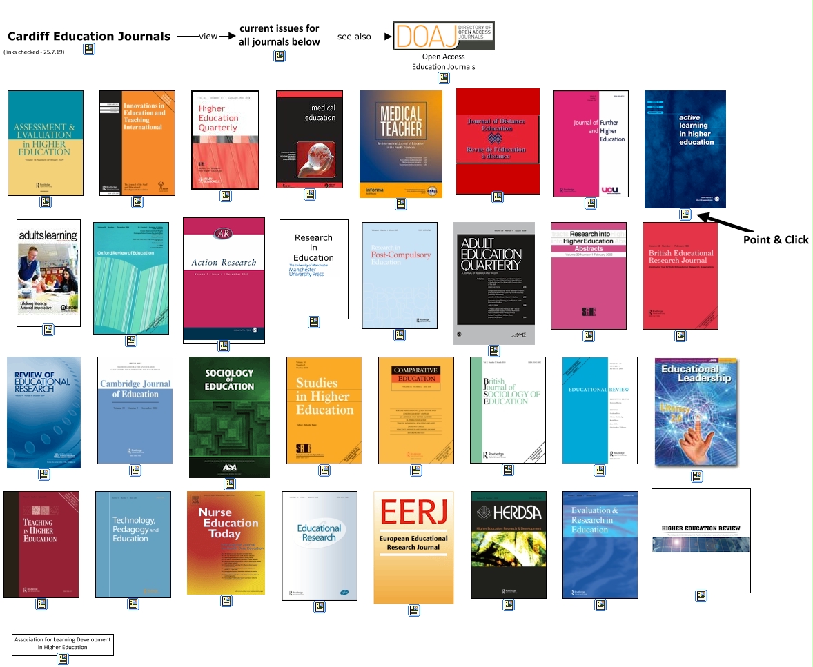 This Concept Map, created with IHMC CmapTools, has information related to: Educational Journals, Point & Click, current issues for all journals below see also Open Access Education Journals, Cardiff Education Journals view current issues for all journals below