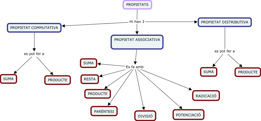 Este Cmap, tiene información relacionada con: PROPIETATS, PROPIETAT ASSOCIATIVA Es fa amb SUMA, PROPIETATS Hi han 3 PROPIETAT ASSOCIATIVA, PROPIETAT ASSOCIATIVA Es fa amb POTENCIACIÓ, PROPIETAT ASSOCIATIVA Es fa amb PRODUCTE, PROPIETAT ASSOCIATIVA Es fa amb RESTA, PROPIETAT ASSOCIATIVA Es fa amb PARÈNTESI, PROPIETAT DISTRIBUTIVA es pot fer a SUMA, PROPIETATS Hi han 3 PROPIETAT DISTRIBUTIVA, PROPIETAT COMMUTATIVA es pot fer a SUMA, PROPIETAT COMMUTATIVA es pot fer a PRODUCTE, PROPIETAT ASSOCIATIVA Es fa amb DIVISIÓ, PROPIETAT DISTRIBUTIVA es pot fer a PRODUCTE, PROPIETATS Hi han 3 PROPIETAT COMMUTATIVA, PROPIETAT ASSOCIATIVA Es fa amb RADICACIÓ