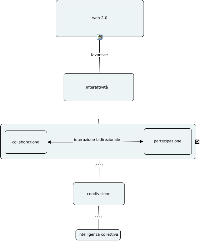 Questa Cmap, creata con IHMC CmapTools, contiene informazioni relative a: Mappa concettuale Marc, condivisione ???? intelligenza collettiva, partecipazione interazione bidirezionale collaborazione, collaborazione di massa ???? condivisione, web 2.0 favorisce interattività, interattività collaborazione di massa
