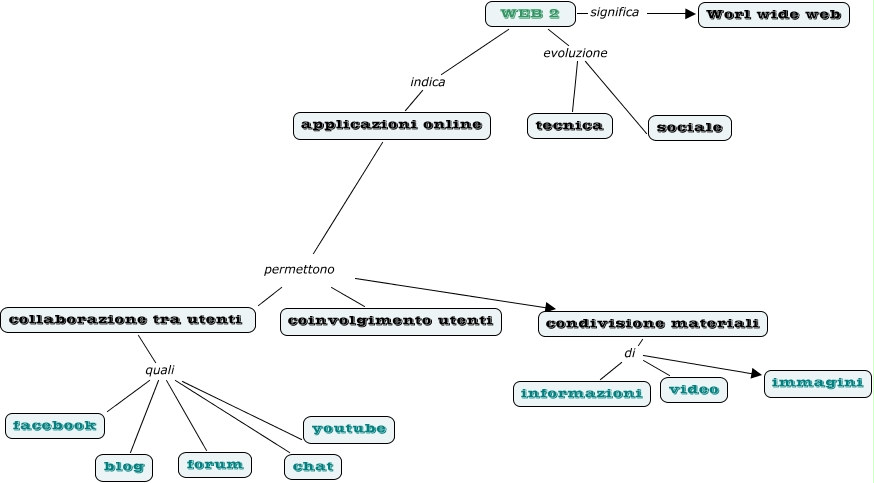 Questa Cmap, creata con IHMC CmapTools, contiene informazioni relative a: Anna Naty, condivisione materiali di immagini, applicazioni online permettono condivisione materiali, WEB 2 indica applicazioni online, WEB 2 evoluzione sociale, collaborazione tra utenti quali blog, condivisione materiali di informazioni, WEB 2 significa Worl wide web, WEB 2 evoluzione tecnica, applicazioni online permettono coinvolgimento utenti, applicazioni online permettono collaborazione tra utenti, collaborazione tra utenti quali youtube, condivisione materiali di video, collaborazione tra utenti quali facebook, collaborazione tra utenti quali chat, collaborazione tra utenti quali forum