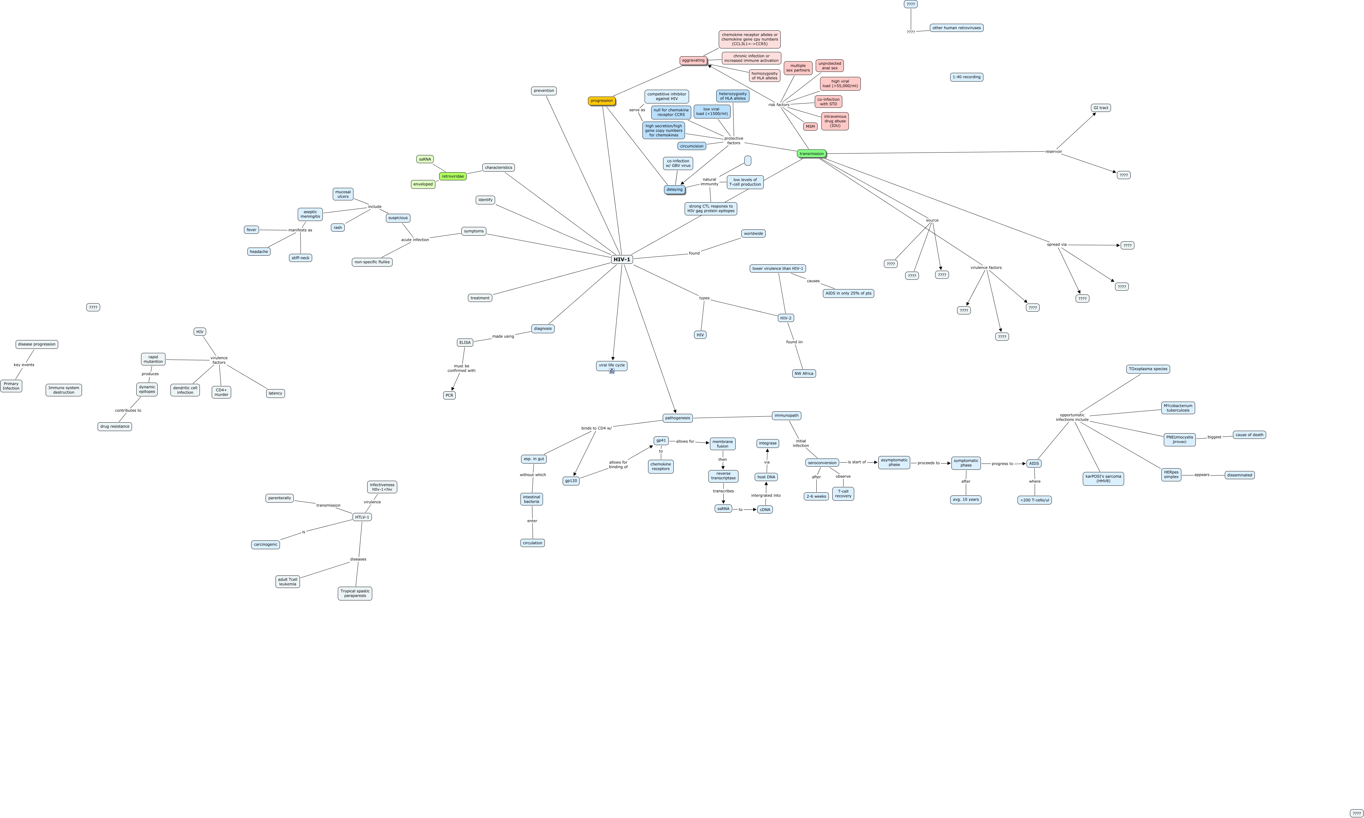 This Concept Map, created with IHMC CmapTools, has information related to: HIV AIDS, transmission source ????, seroconversion is start of asymptomatic phase, rapid mutantion produces dynamic epitopes, delaying natural immunity low levels of T-cell production, delaying co-infection w/ GBV virus, seroconversion after 2-6 weeks, AIDS opportunistic infections include PNEUmocystis jiroveci, HTLV-1 transmission parenterally, HIV-1 symptoms, symptomatic phase progress to AIDS, HIV-1 viral life cycle, aggravating chronic infection or increased immune activation, gp41 to chemokine receptors, other human retroviruses ???? ????, aggravating homozygosity of HLA alleles, progression delaying, characteristics retroviridae, HIV-1 identify, esp. in gut without which intestinal bacteria, HIV-1 types HIV