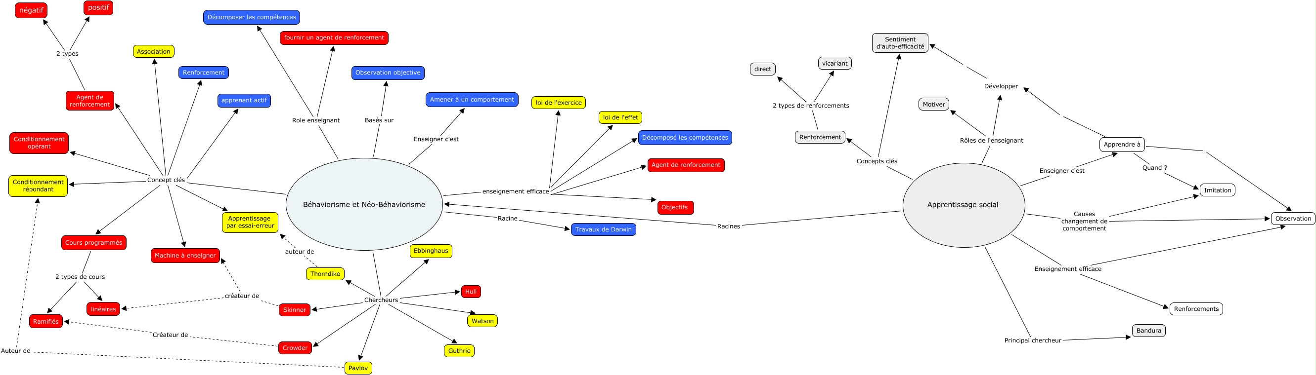 Cette carte de concepts créée avec IHMC CmapTools traite de: Behaviorisme néo-béhaviorisme, Béhaviorisme et Néo-Béhaviorisme Enseigner c'est Amener à un comportement, Apprentissage social Causes changement de comportement Observation, Cours programmés 2 types de cours linéaires, Agent de renforcement 2 types positif, Béhaviorisme et Néo-Béhaviorisme Chercheurs Watson, Apprentissage social Concepts clés Sentiment d'auto-efficacité, Agent de renforcement 2 types négatif, Béhaviorisme et Néo-Béhaviorisme Concept clés Agent de renforcement, Béhaviorisme et Néo-Béhaviorisme Racine Travaux de Darwin, Cours programmés 2 types de cours Ramifiés, Béhaviorisme et Néo-Béhaviorisme Chercheurs Thorndike, Béhaviorisme et Néo-Béhaviorisme Concept clés Conditionnement opérant, Skinner créateur de Machine à enseigner, Apprentissage social Rôles de l'enseignant Motiver, Apprendre à Observation, Apprentissage social Causes changement de comportement Imitation, Béhaviorisme et Néo-Béhaviorisme Basés sur Observation objective, Béhaviorisme et Néo-Béhaviorisme Concept clés apprenant actif, Renforcement 2 types de renforcements direct, Béhaviorisme et Néo-Béhaviorisme Concept clés Apprentissage par essai-erreur