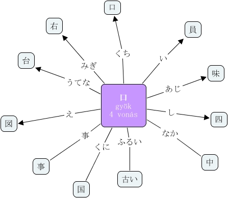 This Concept Map, created with IHMC CmapTools, has information related to: kanjik20111118_L, 口 gyök 4 vonás くに 国, 口 gyök 4 vonás うてな 台, 口 gyök 4 vonás し 四, 口 gyök 4 vonás 事 事, 口 gyök 4 vonás え 図, 口 gyök 4 vonás なか 中, 口 gyök 4 vonás ふるい 古い, 口 gyök 4 vonás あじ 味, 口 gyök 4 vonás い 員, 口 gyök 4 vonás みぎ 右, 口 gyök 4 vonás くち 口