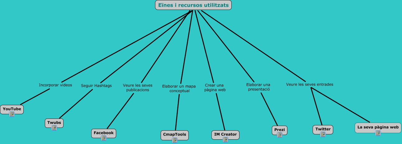 Este Cmap, tiene información relacionada con: Buenafuente, Eïnes i recursos utilitzats Elaborar una presentació Prezi, Eïnes i recursos utilitzats Elaborar un mapa conceptual CmapTools, Twubs Seguir Hashtags Eïnes i recursos utilitzats, Eïnes i recursos utilitzats Veure les seves publicacions Facebook, Eïnes i recursos utilitzats Veure les seves entrades Twitter, Eïnes i recursos utilitzats Crear una pàgina web IM Creator, La seva pàgina web Veure les seves entrades Twitter, YouTube Incorporar videos Eïnes i recursos utilitzats