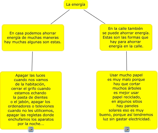 Este Cmap, tiene información relacionada con: La energía, La energía En la calle también se puede ahorrar energía. Estas son las formas que hay para ahorrar energía en la calle., En la calle también se puede ahorrar energía. Estas son las formas que hay para ahorrar energía en la calle. Usar mucho papel es muy malo porque hay que cortar muchos árboles es mejor usar papel reciclado, en algunos sitios hay paneles solares eso es muy bueno, porque así tendremos luz sin gastar electricidad., La energía En casa podemos ahorrar energía de muchas maneras hay muchas algunas son estas., En casa podemos ahorrar energía de muchas maneras hay muchas algunas son estas. Apagar las luces cuando nos vamos de la habitación, cerrar el grifo cuando estamos echando la pasta de dientes o el jabón, apagar los ordenadores o televiones cuando no les utilicemos, apagar las regletas donde enchufamos los aparatos por la noche...
