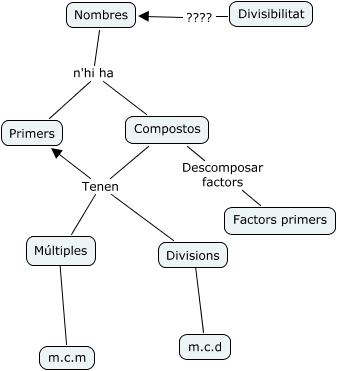 Aquest mapa conceptual conté informació relacionada amb: T2 multiples i divisors, Compostos Tenen Divisions, Compostos Descomposar factors Factors primers, Nombres n'hi ha Primers, Compostos Tenen Múltiples, Compostos Tenen Primers, Nombres n'hi ha Compostos, Divisions ???? m.c.d, Múltiples ???? m.c.m, Divisibilitat ???? Nombres