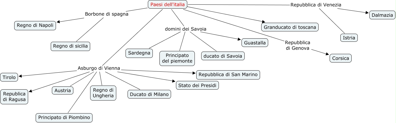 Questa Cmap, creata con IHMC CmapTools, contiene informazioni relative a: paesi dell'italia, Paesi dell'italia Asburgo di Vienna Principato di Piombino, Paesi dell'italia Asburgo di Vienna Austria, Paesi dell'italia domini dei Savoia Principato del piemonte, Paesi dell'italia Borbone di spagna Regno di Napoli, Paesi dell'italia ???? Granducato di toscana, Paesi dell'italia Asburgo di Vienna Stato dei Presidi, Paesi dell'italia Asburgo di Vienna Ducato di Milano, Paesi dell'italia Repubblica di Venezia Istria, Paesi dell'italia domini dei Savoia Sardegna, Paesi dell'italia Asburgo di Vienna Repubblica di San Marino, Paesi dell'italia Asburgo di Vienna Republica di Ragusa, Paesi dell'italia Asburgo di Vienna Regno di Ungheria, Paesi dell'italia domini dei Savoia ducato di Savoia, Paesi dell'italia Repubblica di Genova Corsica, Paesi dell'italia Repubblica di Venezia Dalmazia, Paesi dell'italia Borbone di spagna Regno di sicilia, Paesi dell'italia Asburgo di Vienna Tirolo, Paesi dell'italia domini dei Savoia Guastalla