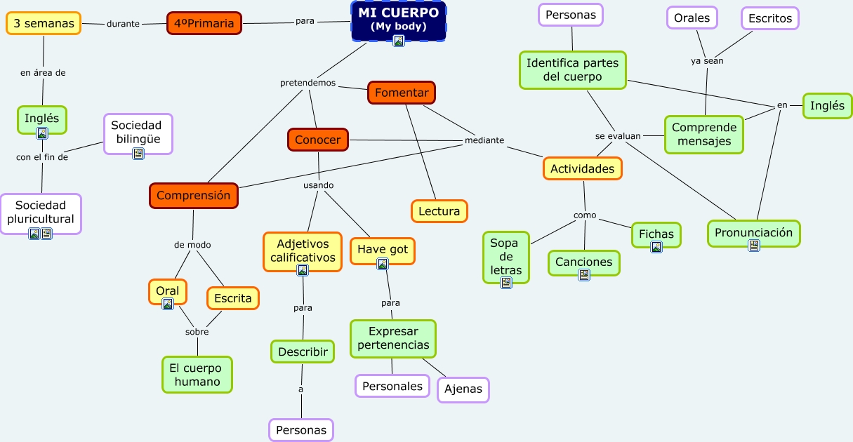 Este Cmap, tiene información relacionada con: Mybody, Personas ???? Identifica partes del cuerpo, 3 semanas en área de Inglés, Comprensión de modo Oral, Actividades como Fichas, Escrita sobre Oral, Actividades como Canciones, Comprende mensajes ya sean Orales, Adjetivos calificativos para Describir, Have got para Expresar pertenencias, Actividades se evaluan Comprende mensajes, Inglés en Comprende mensajes, Conocer mediante Actividades, Conocer pretendemos Fomentar, MI CUERPO (My body) pretendemos Comprensión, Fomentar mediante Actividades, Comprensión de modo Escrita, MI CUERPO (My body) para 4ºPrimaria, Conocer pretendemos Comprensión, Actividades se evaluan Pronunciación, 4ºPrimaria durante 3 semanas