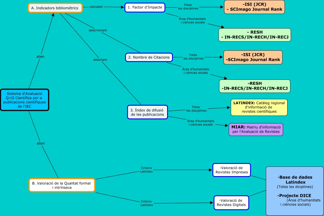 Este Cmap, tiene información relacionada con: Metodologia QplusD Cientifica_PAC3_v01_roxana, A. Indicadors bibliométrics detectant 3. Índex de difusió de les publicacions, Sistema d'Avaluació Q+D Científica per a publicacions científiques de l'IEC aten B. Valoració de la Qualitat formal i intrínseca, 3. Índex de difusió de les publicacions Totes les disciplines LATINDEX: Catàleg regional d'informació de revistes científiques, 3. Índex de difusió de les publicacions Àrea d'humanitats i ciències socials MIAR: Matriu d'informació per l'Avaluació de Revistes, 2. Nombre de Citacions Àrea d'humanitats i ciències socials -RESH -IN-RECS/IN-RECH/IN-RECJ, 2. Nombre de Citacions Totes les disciplines -ISI (JCR) -SCImago Journal Rank, 1. Factor d'Impacte Totes les disciplines -ISI (JCR) - SCImago Journal Rank, -Valoració de Revistes Digitals -Base de dades Latindex (Totes les diciplines) -Projecte DICE (Àrea d'humanitats i ciències socials), Sistema d'Avaluació Q+D Científica per a publicacions científiques de l'IEC aten A. Indicadors bibliométrics, A. Indicadors bibliométrics calculant 1. Factor d'Impacte, B. Valoració de la Qualitat formal i intrínseca Criteris Latindex -Valoració de Revistes Digitals, B. Valoració de la Qualitat formal i intrínseca Criteris Latindex -Valoració de Revistes Impreses, 1. Factor d'Impacte Àrea d'humanitats i ciències socials - RESH - IN-RECS/IN-RECH/IN-RECJ, -Valoració de Revistes Impreses -Base de dades Latindex (Totes les diciplines) -Projecte DICE (Àrea d'humanitats i ciències socials), A. Indicadors bibliométrics determinant 2. Nombre de Citacions