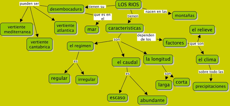 Este Cmap, tiene información relacionada con: los rios, desembocadura pueden ser vertiente cantabrica, caracteristicas son la longitud, el caudal es escaso, factores que son el clima, la longitud son corta, el regimen es regular, factores que son el relieve, caracteristicas son el caudal, el clima sobre todo las precipitaciones, caracteristicas dependen de los factores, el regimen es irregular, LOS RIOS nacen en las montañas, desembocadura pueden ser vertiente mediterranea, el caudal es abundante, LOS RIOS tienen caracteristicas, la longitud son larga, desembocadura que es en el mar, LOS RIOS tienen su desembocadura, desembocadura pueden ser vertiente atlantica, caracteristicas son el regimen