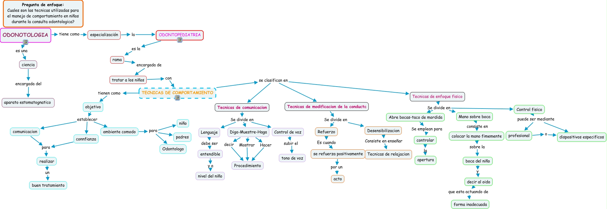 Este Cmap, tiene información relacionada con: Sin Título 1, ciencia encargada del aparato estomatognatico, Tecnicas de comunicacion Se divide en Control de voz, Abre bocas-taco de mordida Se emplean para controlar, ambiente comodo para niño, Tecnicas de modificacion de la conducta Se divide en Refuerzo, comunicacion para realizar, Tecnicas de enfoque fisico Se divide en Abre bocas-taco de mordida, connfianza para realizar, Tecnicas de comunicacion Se divide en Diga-Muestre-Haga, Desensibilizacion Consiste en enseñar Tecnicas de relajacion, tratar a los niños con TECNICAS DE COMPORTAMIENTO, Tecnicas de modificacion de la conducta Se divide en Desensibilizacion, entendible y a nivel del niño, Tecnicas de enfoque fisico Se divide en Control fisico, realizar un buen tratamiento, Control fisico puede ser mediante dispositivos especificos, Diga-Muestre-Haga Mostrar Procedimiento, Tecnicas de comunicacion Se divide en Lenguaje, TECNICAS DE COMPORTAMIENTO tienen como objetivo, objetivo establecer ambiente comodo