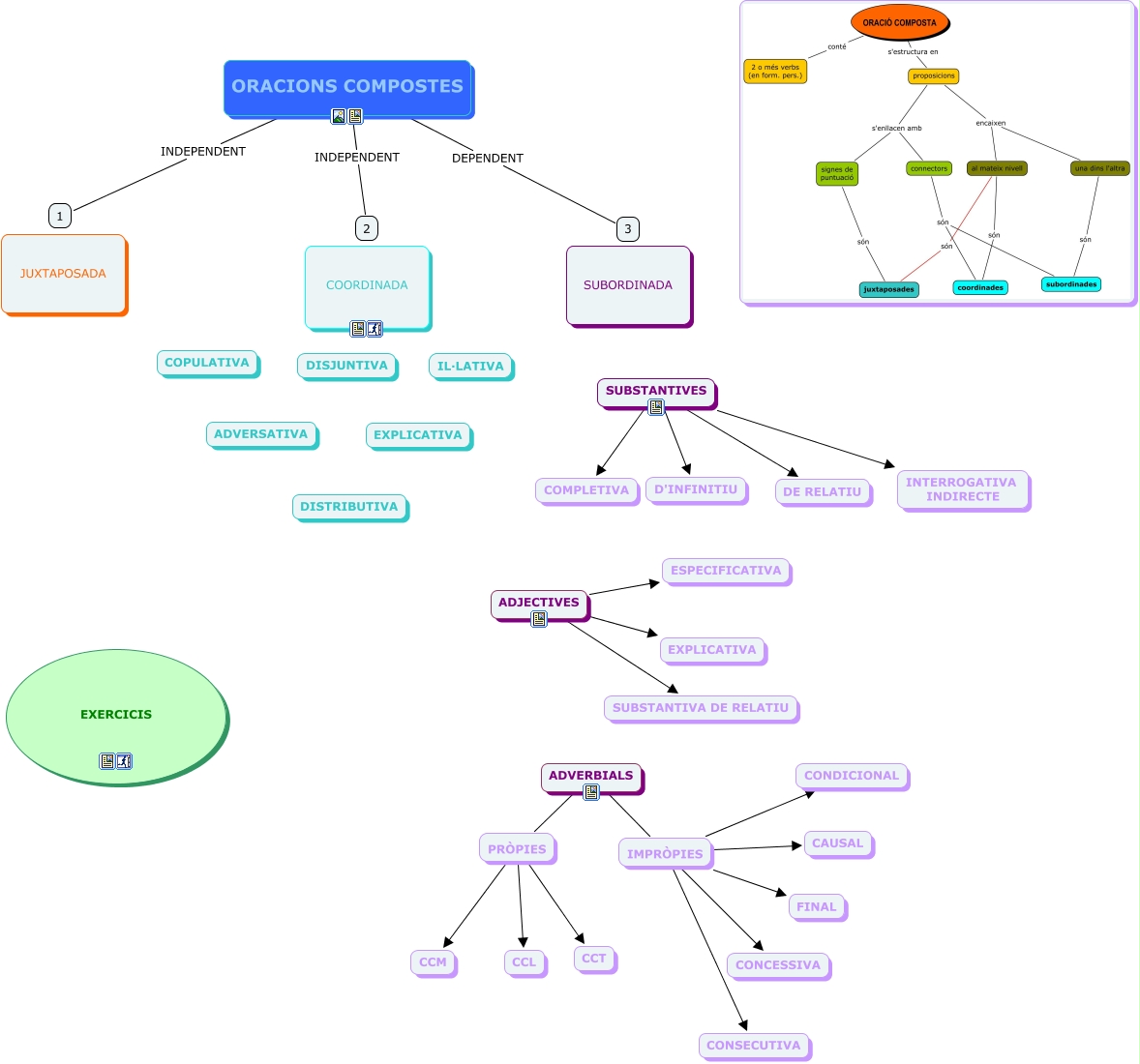 Este Cmap, tiene información relacionada con: ORACIONS COMPOSTES, IMPRÒPIES CONDICIONAL, ORACIONS COMPOSTES INDEPENDENT 1, ADJECTIVES ESPECIFICATIVA, ADJECTIVES EXPLICATIVA, SUBSTANTIVES COMPLETIVA, SUBSTANTIVES D'INFINITIU, IMPRÒPIES CAUSAL, IMPRÒPIES FINAL, PRÒPIES CCL, SUBSTANTIVES INTERROGATIVA INDIRECTE, PRÒPIES CCT, SUBSTANTIVES DE RELATIU, IMPRÒPIES CONCESSIVA, PRÒPIES CCM, IMPRÒPIES CONSECUTIVA, ORACIONS COMPOSTES DEPENDENT 3, ADVERBIALS IMPRÒPIES, ADVERBIALS PRÒPIES, ORACIONS COMPOSTES INDEPENDENT 2, ADJECTIVES SUBSTANTIVA DE RELATIU