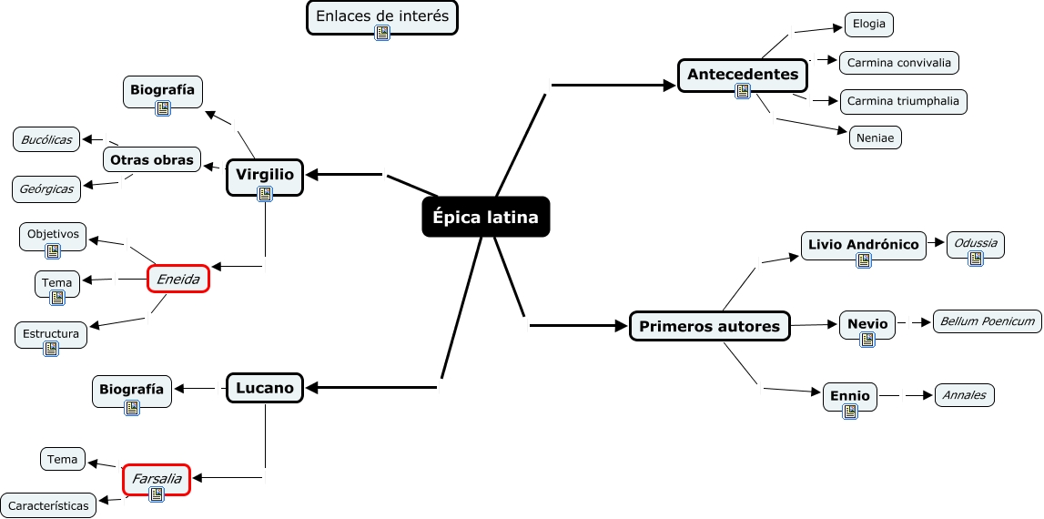 Este Cmap, tiene información relacionada con: Épica latina, Épica latina Virgilio, Antecedentes Carmina convivalia, Antecedentes Neniae, Virgilio Otras obras, Épica latina Primeros autores, Lucano Farsalia, Ennio Annales, Épica latina Lucano, Primeros autores Nevio, Farsalia Tema, Virgilio Biografía, Otras obras Bucólicas, Antecedentes Elogia, Antecedentes Carmina triumphalia, Virgilio Eneida, Eneida Tema, Farsalia Características, Lucano Biografía, Eneida Objetivos, Eneida Estructura