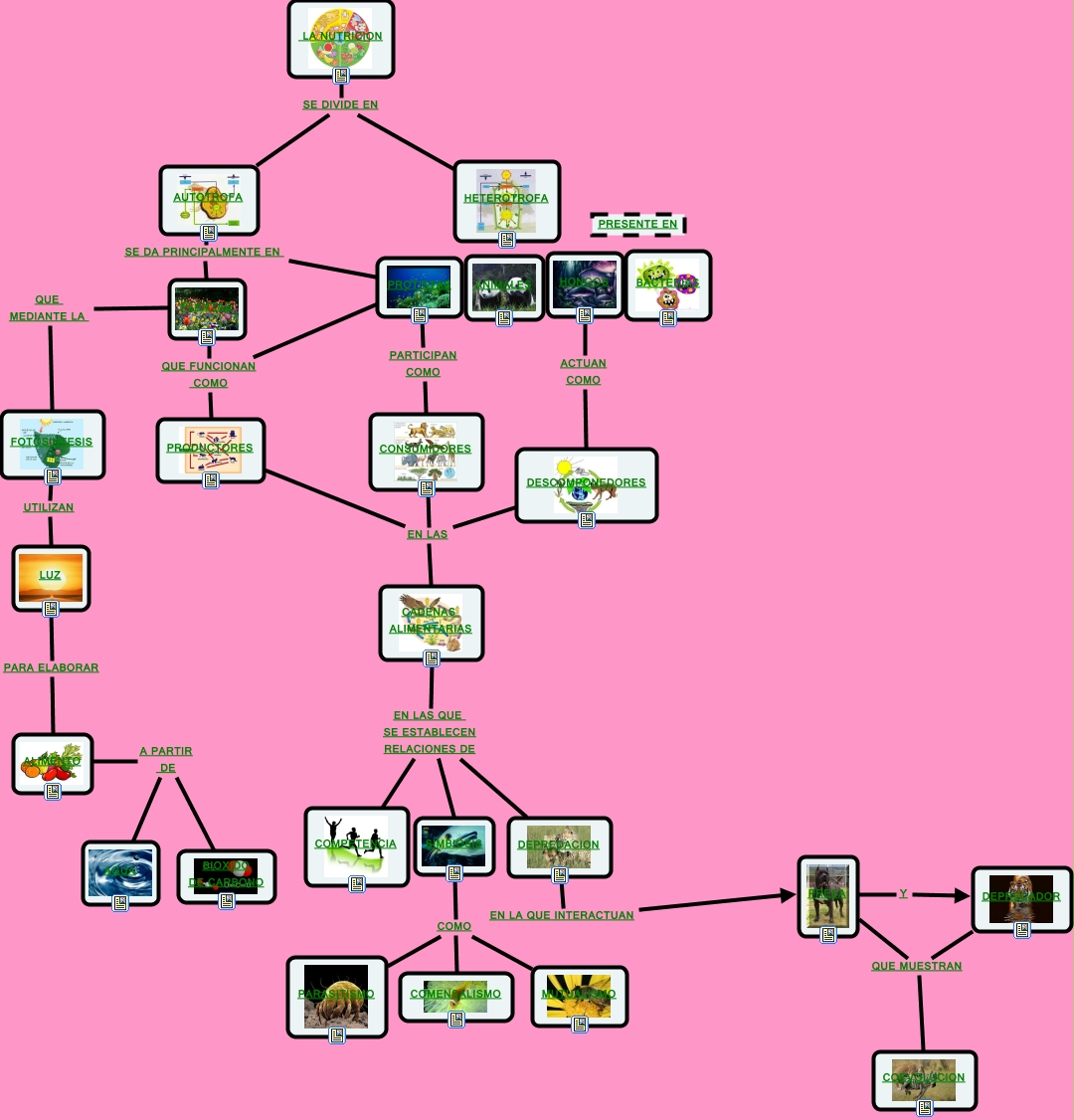 Este Cmap, tiene información relacionada con: la nutricion, DEPREDACION EN LA QUE INTERACTUAN PRESA, PRODUCTORES EN LAS CADENAS ALIMENTARIAS, LA NUTRICION SE DIVIDE EN HETEROTROFA, AUTOTROFA SE DA PRINCIPALMENTE EN PLANTAS, SIMBIOSIS COMO MUTUALISMO, ALIMENTO A PARTIR DE BIOXIDO DE CARBONO, PRESA QUE MUESTRAN COEVOLUCION, PLANTAS QUE MEDIANTE LA FOTOSINTESIS, HONGOS ACTUAN COMO DESCOMPONEDORES, SIMBIOSIS COMO COMENSALISMO, PRESA Y DEPREDADOR, ALIMENTO A PARTIR DE AGUA, SIMBIOSIS COMO PARASITISMO, LA NUTRICION SE DIVIDE EN AUTOTROFA, FOTOSINTESIS UTILIZAN LUZ, PROTISTAS SE DA PRINCIPALMENTE EN PLANTAS, CADENAS ALIMENTARIAS EN LAS QUE SE ESTABLECEN RELACIONES DE DEPREDACION, CADENAS ALIMENTARIAS EN LAS QUE SE ESTABLECEN RELACIONES DE COMPETENCIA, PROTISTAS PARTICIPAN COMO CONSUMIDORES, PLANTAS QUE FUNCIONAN COMO PRODUCTORES