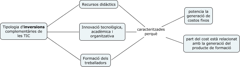 Aquest mapa conceptual conté informació relacionada amb: Inversions capital intengible - Característiques econòmiques (gestió i sistemes), Tipologia d'inversions complementàries de les TIC ???? Recursos didàctics, Recursos didàctics caracteritzades perquè Innovació tecnològica, acadèmica i organitzativa, Tipologia d'inversions complementàries de les TIC ???? Formació dels treballadors, Recursos didàctics caracteritzades perquè part del cost està relacionat amb la generació del producte de formació, Recursos didàctics caracteritzades perquè Formació dels treballadors, Tipologia d'inversions complementàries de les TIC ???? Innovació tecnològica, acadèmica i organitzativa, Recursos didàctics caracteritzades perquè potencia la generació de costos fixos