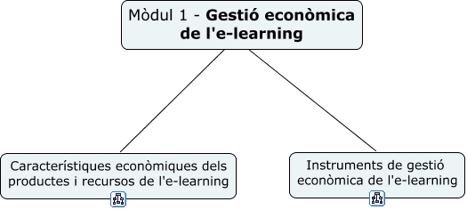 Aquest mapa conceptual conté informació relacionada amb: Esquema del Mòdul 1, Mòdul 1 - Gestió econòmica de l'e-learning ???? Característiques econòmiques dels productes i recursos de l'e-learning, Mòdul 1 - Gestió econòmica de l'e-learning ???? Instruments de gestió econòmica de l'e-learning