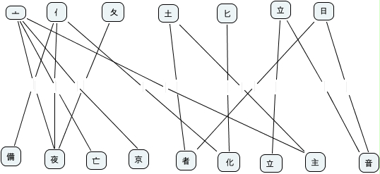 This Concept Map, created with IHMC CmapTools, has information related to: 2. csoport, 日 音, 立 音, 亠 亡, 夂 夜, 亠 夜, 亠 主, 亠 京, 亻 備, 立 立, 土 主, 匕 化, 日 者, 土 者, 亻 夜, 亻 化