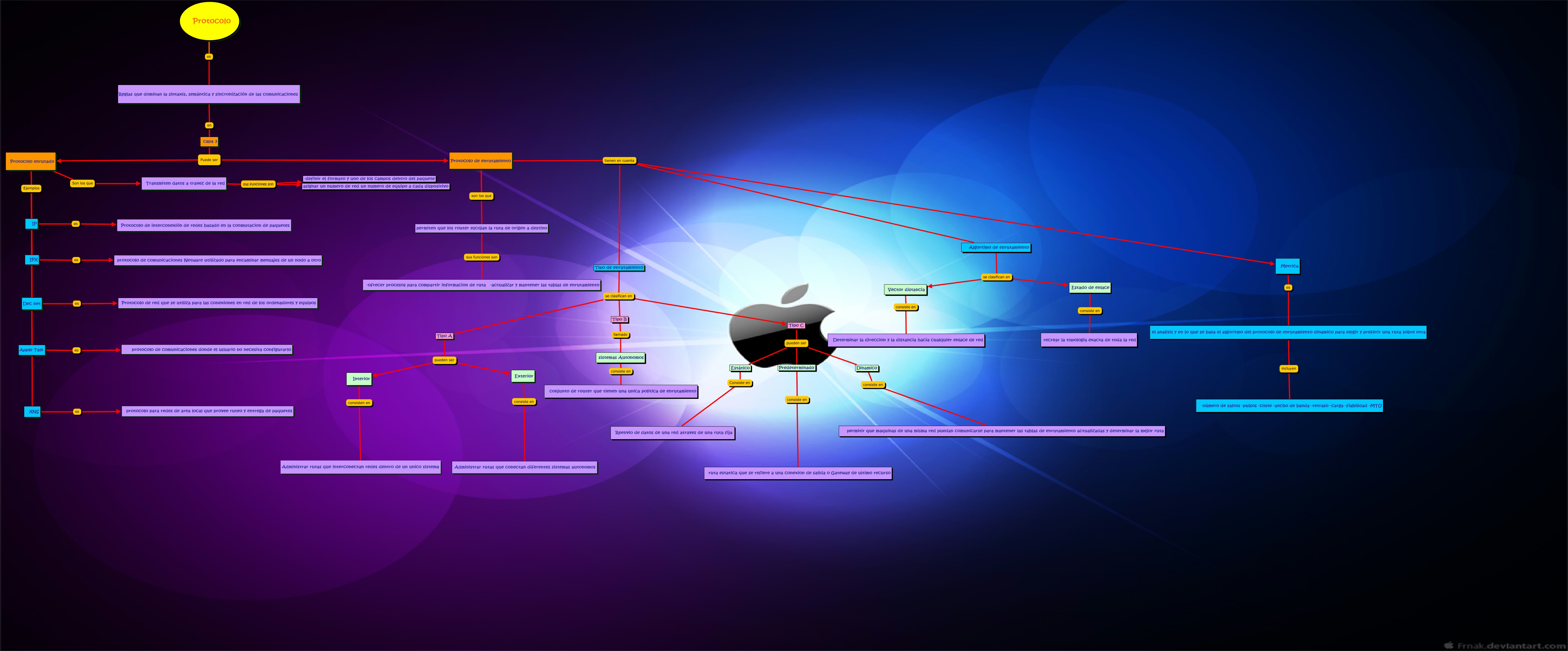 Este Cmap, tiene información relacionada con: protocolos, Tipo A pueden ser Exterior, Tipo de enrutamiento se clasifican en Tipo B, Tipo de enrutamiento se clasifican en Tipo C, Tipo A pueden ser Interior, Tipo B llamado sistemas Autonomos, Tipo de enrutamiento se clasifican en Tipo A, Algortimo de enrutamiento se clasifican en Vector distancia, Protocolo enrutado Ejemplos IPX, XNS es protocolo para redes de area local que provee ruteo y entrega de paquetes, Apple Talk es protocolo de comunicaciones donde el usuario no necesita configurarlo, Protocolo de enrutamiento tienen en cuenta Tipo de enrutamiento, sistemas Autonomos consiste en conjunto de router que tienen una unica politica de enrutamiento, Protocolo de enrutamiento son los que permiten que los router escojan la ruta de origen a destino, Protocolo enrutado Ejemplos Apple Talk, Protocolo enrutado Ejemplos XNS, Estático Consiste en Reenvio de datos de una red atraves de una ruta fija, Exterior consiste en Administrar rutas que conectan diferentes sistemas autonomos, Interior consisten en Administrar rutas que interconectan redes dentro de un unico sistema, Predeterminado consiste en ruta estatica que se refiere a una conexion de salida o Gateway de ultimo recurso, Vector distancia consiste en Determinar la direccion y la distancia hacia cualquier enlace de red