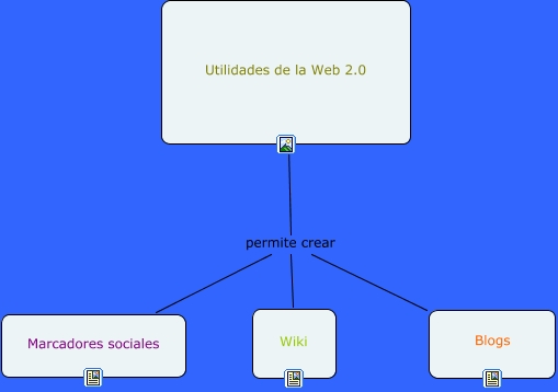 Este Cmap, tiene información relacionada con: Mapa conceptual Web 2.0, Utilidades de la Web 2.0 permite crear Wiki, Utilidades de la Web 2.0 permite crear Marcadores sociales, Utilidades de la Web 2.0 permite crear Blogs