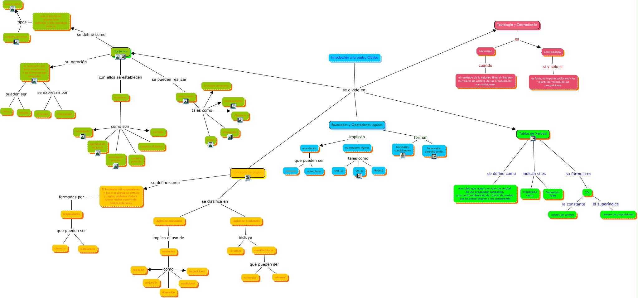 Este Cmap, tiene información relacionada con: César Arturo Bautista Uc, relaciones como son subconjunto, se representa con letras mayúsculas y sus elementos con minúsculas pueden ser finitos, cuantificadores que pueden ser universal, Conjuntos con ellos se establecen relaciones, operadores lógicos tales como Or (o), operaciones tales como diferencia, Conjuntos se pueden realizar operaciones, Contradicción si y sólo si es falsa, no importa cuales sean los valores de verdad de sus proposiciones., Lógica de enunciados implica el uso de constantes, Introducción a la Lógica Clásica se divide en Tautología y Contradicción, Enunciados y Operaciones Lógicas forman Enunciados condicionales, operadores lógicos tales como Not(no), Conjuntos su notación se representa con letras mayúsculas y sus elementos con minúsculas, Introducción a la Lógica Clásica se divide en Enunciados y Operaciones Lógicas, Tautología cuando el resultado de la columna final, sin impotar los valores de certeza de sus proposiciones, son verdaderas., Tablas de Verdad su fórmula es 2^n, Enunciados y Operaciones Lógicas forman Enunciados bicondicionales, Enunciados y Operaciones Lógicas implican enunciados, constantes como bicondicional, se representa con letras mayúsculas y sus elementos con minúsculas se expresan por extensión