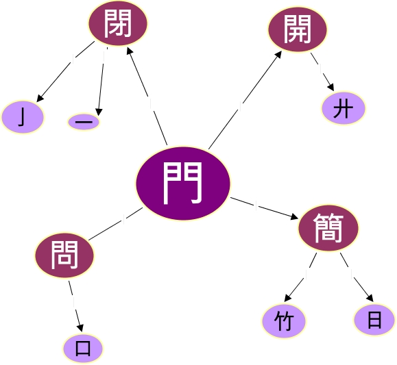 This Concept Map, created with IHMC CmapTools, has information related to: GyE_2012_04_12, 問 口, 閉 亅, 開 廾, 簡 日, 門 開, 閉 一, 門 問, 簡 竹, 門 簡, 門 閉