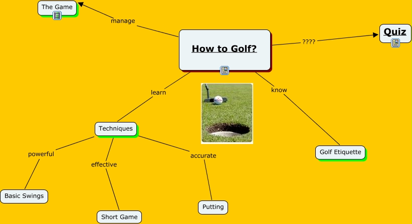 This Concept Map, created with IHMC CmapTools, has information related to: Mohdnoor, How to Golf? know Golf Etiquette, Techniques powerful Basic Swings, How to Golf? learn Techniques, Techniques accurate Putting, Techniques effective Short Game, How to Golf? ???? Quiz, How to Golf? manage The Game