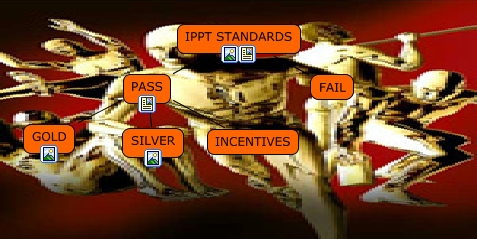 This Concept Map, created with IHMC CmapTools, has information related to: IPPT_FOR_INDIVIDUAL, PASS GOLD, PASS SILVER, IPPT STANDARDS PASS, IPPT STANDARDS FAIL, PASS INCENTIVES