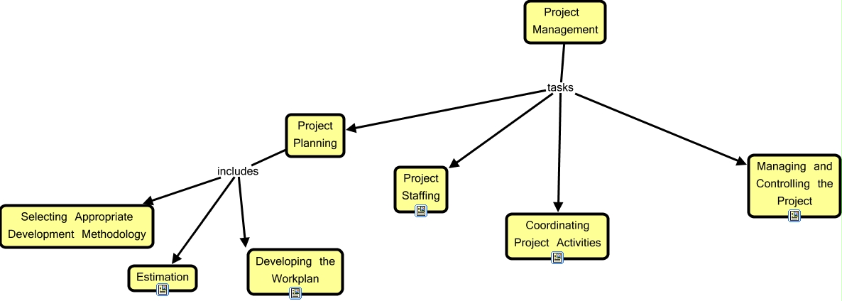 This Concept Map, created with IHMC CmapTools, has information related to: Project Management Activities, Project Management tasks Project Staffing, Project Planning includes Selecting Appropriate Development Methodology, Project Planning includes Estimation, Project Planning includes Developing the Workplan, Project Management tasks Managing and Controlling the Project, Project Management tasks Project Planning, Project Management tasks Coordinating Project Activities