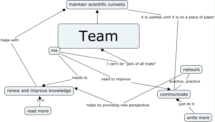 This Concept Map, created with IHMC CmapTools, has information related to: WONG_Map2, maintain scientific curiosity it is useless until it is on a piece of paper communicate, network helps by providing new perspective renew and improve knowledge, write more just do it communicate, network practice, practice communicate, read more ???? renew and improve knowledge, renew and improve knowledge helps with maintain scientific curiosity, me needs to renew and improve knowledge, me ???? maintain scientific curiosity, me I can't be "jack of all trade" Team, me need to improve communicate