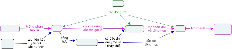 This Concept Map, created with IHMC CmapTools, has information related to: b3, xúc tác, tổng hợp ???? DNA, nucleotide trùng phân tạo ra RNA, CLTN tác động tới DNA, CLTN tác động tới RNA, Ribozyme tự nhân đôi và tổng hợp DNA, RNA tổng hợp Polypeptide, acid amine tạo liên kết yếu với các nu trên RNA, DNA trở thành Vật chất di truyền, Polypeptide có đặc tính enzyme sẽ thay thế Ribozyme, CLTN tác động tới Ribozyme, Polypeptide có đặc tính enzyme sẽ thay thế xúc tác, tổng hợp, RNA có khả năng xúc tác gọi là Ribozyme