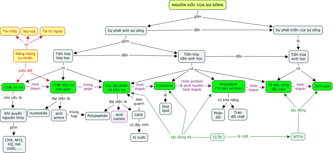 This Concept Map, created with IHMC CmapTools, has information related to: Copy of b1, Tiến hóa hóa học có Các đại phân tử hữu cơ, Tiến hóa tiền sinh học có Liposome, Năng lượng tự nhiên biến đổi Chất vô cơ, NGUỒN GỐC CỦA SỰ SỐNG gồm Sự phát triển của sự sống, Lipid có đặc tính Kị nước, Chất hữu cơ đơn giản đại diện là acid amine, Protobiont (Tế bào sơ khai) hình thành Tế bào sống đầu tiên, Năng lượng tự nhiên từ Núi lửa, Các đại phân tử hữu cơ đại diện là Lipid, acid amine trùng hợp Polypeptide, Khí quyển nguyên thủy gồm CH4, NH3, H2, hơi nước, ..., Tế bào sống đầu tiên hình thành Sinh giới, Sự phát sinh sự sống gồm Tiến hóa hóa học, Sự phát sinh sự sống đến Sự phát triển của sự sống, Protobiont (Tế bào sơ khai) có khả năng Phân đôi, CLTN tác động tới Protobiont (Tế bào sơ khai), Tiến hóa tiền sinh học có Tế bào sống đầu tiên, Năng lượng tự nhiên từ Tia tử ngoại, Tiến hóa hóa học có Chất vô cơ, Tiến hóa sinh học có Sinh giới