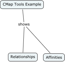 This Concept Map, created with IHMC CmapTools, has information related to: Example, CMap Tools Example shows Affinities, CMap Tools Example shows Relationships