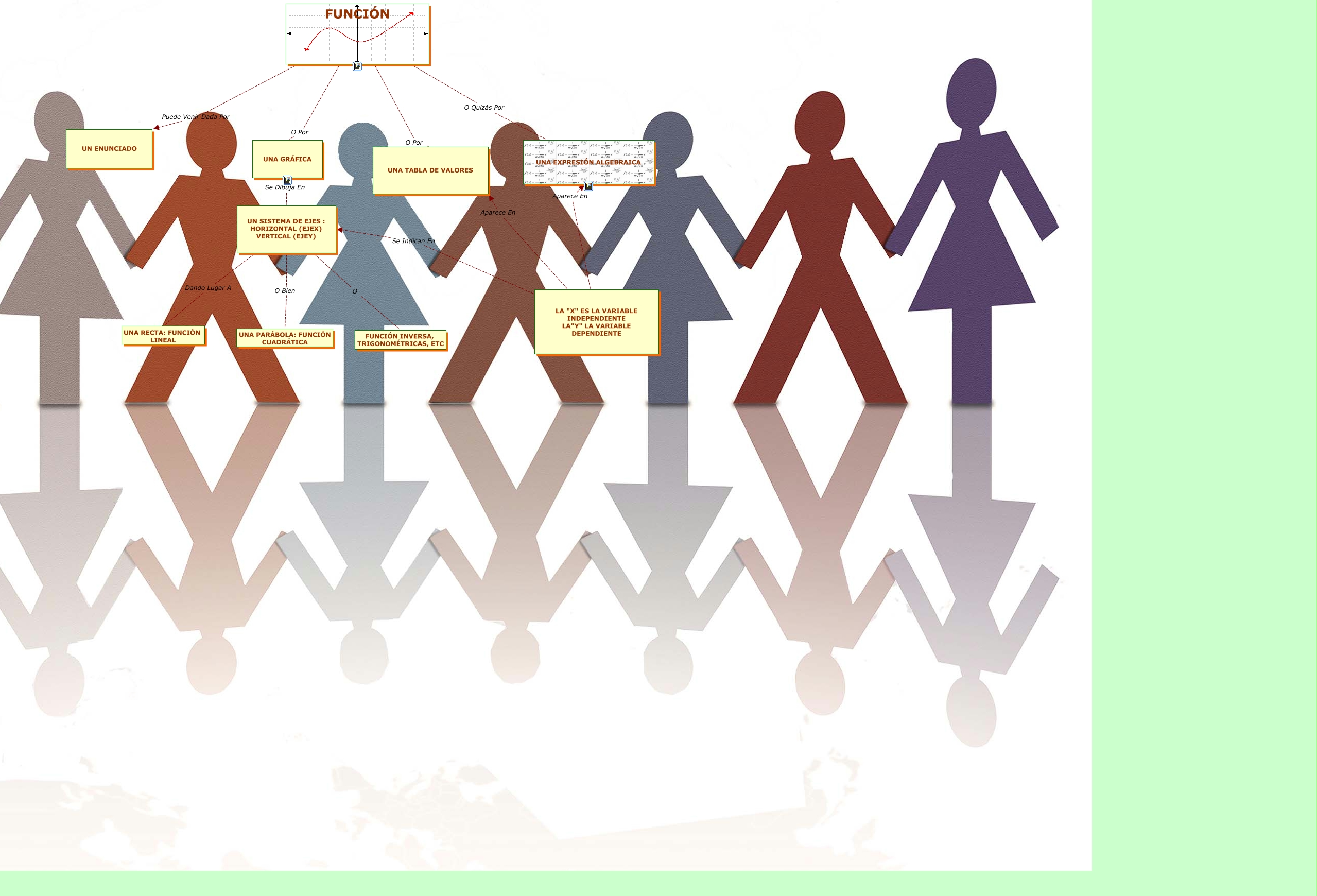 Este Cmap, tiene información relacionada con: Primer Cmap Tarea6, FUNCIÓN O Por UNA TABLA DE VALORES, FUNCIÓN Puede Venir Dada Por UN ENUNCIADO, UN SISTEMA DE EJES : HORIZONTAL (EJEX) VERTICAL (EJEY) Dando Lugar A UNA RECTA: FUNCIÓN LINEAL, LA "X" ES LA VARIABLE INDEPENDIENTE LA"Y" LA VARIABLE DEPENDIENTE Aparece En UNA EXPRESIÓN ALGEBRAICA, LA "X" ES LA VARIABLE INDEPENDIENTE LA"Y" LA VARIABLE DEPENDIENTE Aparece En UNA TABLA DE VALORES, FUNCIÓN O Quizás Por UNA EXPRESIÓN ALGEBRAICA, UN SISTEMA DE EJES : HORIZONTAL (EJEX) VERTICAL (EJEY) O FUNCIÓN INVERSA, TRIGONOMÉTRICAS, ETC, UN SISTEMA DE EJES : HORIZONTAL (EJEX) VERTICAL (EJEY) O Bien UNA PARÁBOLA: FUNCIÓN CUADRÁTICA, UNA GRÁFICA Se Dibuja En UN SISTEMA DE EJES : HORIZONTAL (EJEX) VERTICAL (EJEY), LA "X" ES LA VARIABLE INDEPENDIENTE LA"Y" LA VARIABLE DEPENDIENTE Se Indican En UN SISTEMA DE EJES : HORIZONTAL (EJEX) VERTICAL (EJEY), FUNCIÓN O Por UNA GRÁFICA