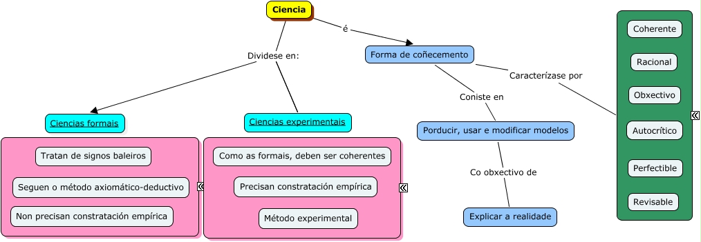 Este Cmap, tiene información relacionada con: Ciencia_miguel, Ciencia Dividese en: Ciencias experimentais, Ciencia Dividese en: Ciencias experimentais, Forma de coñecemento Caracterízase por ????, Porducir, usar e modificar modelos Co obxectivo de Explicar a realidade, Forma de coñecemento Coniste en Porducir, usar e modificar modelos, Ciencia é Forma de coñecemento, Ciencia Dividese en: Ciencias formais