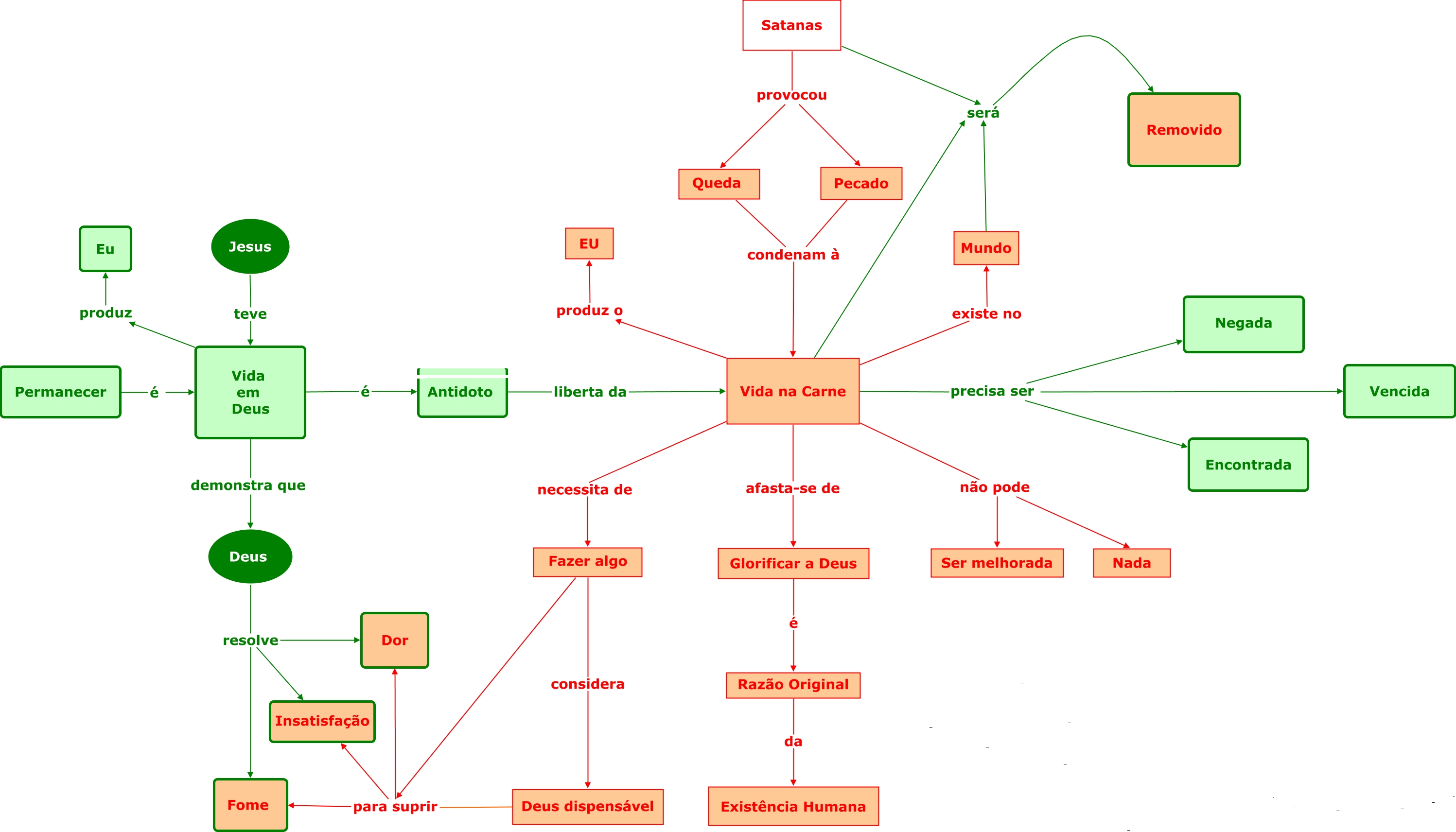 Esse mapa conceitual, produzido no IHMC CmapTools, tem a informação relacionada a: A VIDA QUE SATISFAZ - CAP. 11 - A CARNE, Vida na Carne precisa ser Vencida, Fazer algo para suprir Dor, Glorificar a Deus é Razão Original, Satanas provocou Queda, Fazer algo para suprir Fome, Vida na Carne será Removido, Deus dispensável para suprir Dor, Vida em Deus produz Eu, Deus dispensável para suprir Fome, Vida na Carne produz o EU, Vida na Carne precisa ser Negada, Jesus teve Vida em Deus, Vida na Carne não pode Ser melhorada, Vida na Carne existe no Mundo, Razão Original da Existência Humana, Deus resolve Insatisfação, Satanas será Removido, Fazer algo considera Deus dispensável, Vida na Carne precisa ser Encontrada, Vida na Carne não pode Nada