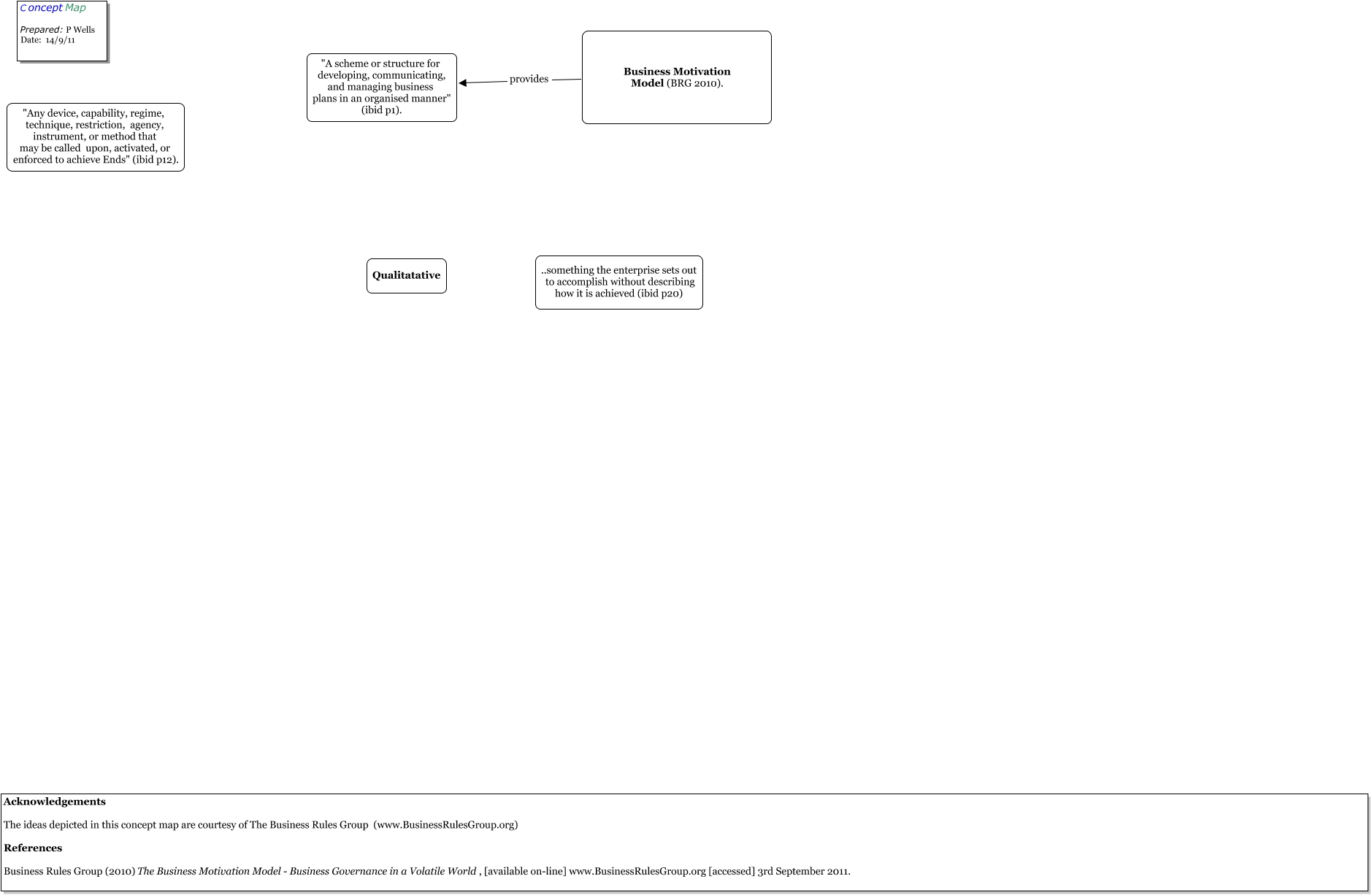 This Concept Map, created with IHMC CmapTools, has information related to: SCRUM Concepts Overviewl_PA1, Business Motivation Model (BRG 2010). provides "A scheme or structure for developing, communicating, and managing business plans in an organised manner" (ibid p1).