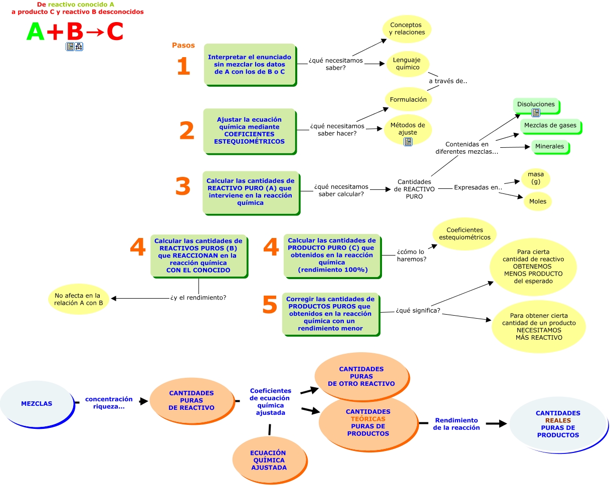 Este Cmap, tiene información relacionada con: rq2, Corregir las cantidades de PRODUCTOS PUROS que obtenidos en la reacción química con un rendimiento menor ¿qué significa? Para obtener cierta cantidad de un producto NECESITAMOS MÁS REACTIVO, Lenguaje químico a través de.. Formulación, CANTIDADES PURAS DE REACTIVO Coeficientes de ecuación química ajustada CANTIDADES PURAS DE OTRO REACTIVO, Cantidades de REACTIVO PURO Contenidas en diferentes mezclas... Mezclas de gases, ECUACIÓN QUÍMICA AJUSTADA Coeficientes de ecuación química ajustada CANTIDADES PURAS DE OTRO REACTIVO, Calcular las cantidades de PRODUCTO PURO (C) que obtenidos en la reacción química (rendimiento 100%) ¿cómo lo haremos? Coeficientes estequiométricos, CANTIDADES TEÓRICAS PURAS DE PRODUCTOS Rendimiento de la reacción CANTIDADES REALES PURAS DE PRODUCTOS, Cantidades de REACTIVO PURO Contenidas en diferentes mezclas... Minerales, Ajustar la ecuación química mediante COEFICIENTES ESTEQUIOMÉTRICOS ¿qué necesitamos saber hacer? Formulación, Interpretar el enunciado sin mezclar los datos de A con los de B o C ¿qué necesitamos saber? Lenguaje químico, CANTIDADES PURAS DE REACTIVO Coeficientes de ecuación química ajustada CANTIDADES TEÓRICAS PURAS DE PRODUCTOS, Calcular las cantidades de REACTIVO PURO (A) que interviene en la reacción química ¿qué necesitamos saber calcular? Cantidades de REACTIVO PURO, ECUACIÓN QUÍMICA AJUSTADA Coeficientes de ecuación química ajustada CANTIDADES TEÓRICAS PURAS DE PRODUCTOS, Interpretar el enunciado sin mezclar los datos de A con los de B o C ¿qué necesitamos saber? Conceptos y relaciones, Ajustar la ecuación química mediante COEFICIENTES ESTEQUIOMÉTRICOS ¿qué necesitamos saber hacer? Métodos de ajuste, Cantidades de REACTIVO PURO Expresadas en.. masa (g), MEZCLAS concentración riqueza... CANTIDADES PURAS DE REACTIVO, Cantidades de REACTIVO PURO Contenidas en diferentes mezclas... Disoluciones, Cantidades de REACTIVO PURO Expresadas en.. Moles, Corregir las cantidades de PRODUCTOS PUROS que obtenidos en la reacción química con un rendimiento menor ¿qué significa? Para cierta cantidad de reactivo OBTENEMOS MENOS PRODUCTO del esperado