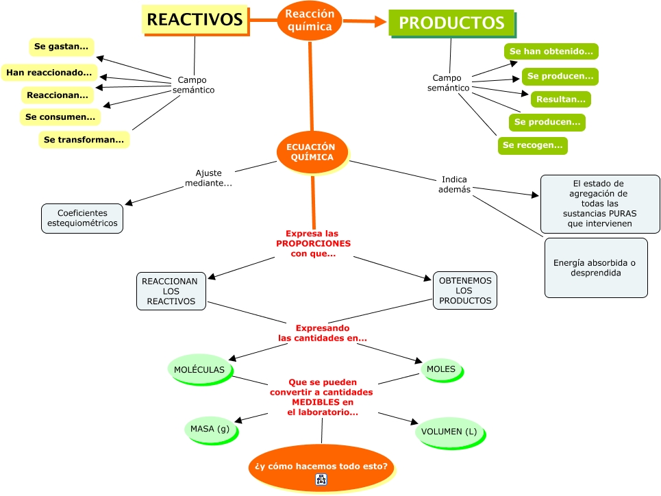 Este Cmap, tiene información relacionada con: rq1, MOLES Que se pueden convertir a cantidades MEDIBLES en el laboratorio... MASA (g), ECUACIÓN QUÍMICA Ajuste mediante... Coeficientes estequiométricos, REACTIVOS Campo semántico Se consumen..., PRODUCTOS Campo semántico Se producen..., OBTENEMOS LOS PRODUCTOS Expresando las cantidades en... MOLÉCULAS, ECUACIÓN QUÍMICA Expresa las PROPORCIONES con que... OBTENEMOS LOS PRODUCTOS, MOLÉCULAS Que se pueden convertir a cantidades MEDIBLES en el laboratorio... MASA (g), MOLÉCULAS Que se pueden convertir a cantidades MEDIBLES en el laboratorio... VOLUMEN (L), REACTIVOS Campo semántico Han reaccionado..., PRODUCTOS Campo semántico Se producen..., MOLES Que se pueden convertir a cantidades MEDIBLES en el laboratorio... ¿y cómo hacemos todo esto?, REACCIONAN LOS REACTIVOS Expresando las cantidades en... MOLES, REACCIONAN LOS REACTIVOS Expresando las cantidades en... MOLÉCULAS, REACTIVOS Campo semántico Se gastan..., PRODUCTOS Campo semántico Resultan..., REACTIVOS Reacción química ECUACIÓN QUÍMICA, OBTENEMOS LOS PRODUCTOS Expresando las cantidades en... MOLES, REACTIVOS Reacción química PRODUCTOS, MOLES Que se pueden convertir a cantidades MEDIBLES en el laboratorio... VOLUMEN (L), ECUACIÓN QUÍMICA Indica además El estado de agregación de todas las sustancias PURAS que intervienen