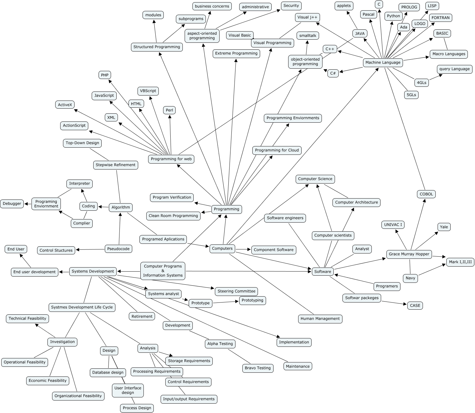 This Concept Map, created with IHMC CmapTools, has information related to: JORDAN, Programming Programming for Cloud, Programming Program Verification, Alpha Testing Bravo Testing, Programming Programming for web, Coding Interpreter, End user development End User, Computers Human Management, Investigation Operational Feasibility, Programming for web JavaScript, Programers Software, Machine Language Ada, Programming Structured Programming, Pseudocode Control Stuctures, Interpreter Programing Enviornment, Programing Enviornment Debugger, Analysis Processing Requirements, aspect-oriented programming administrative, Machine Language Pascal, Software Computer Architecture, Systems Development Retirement