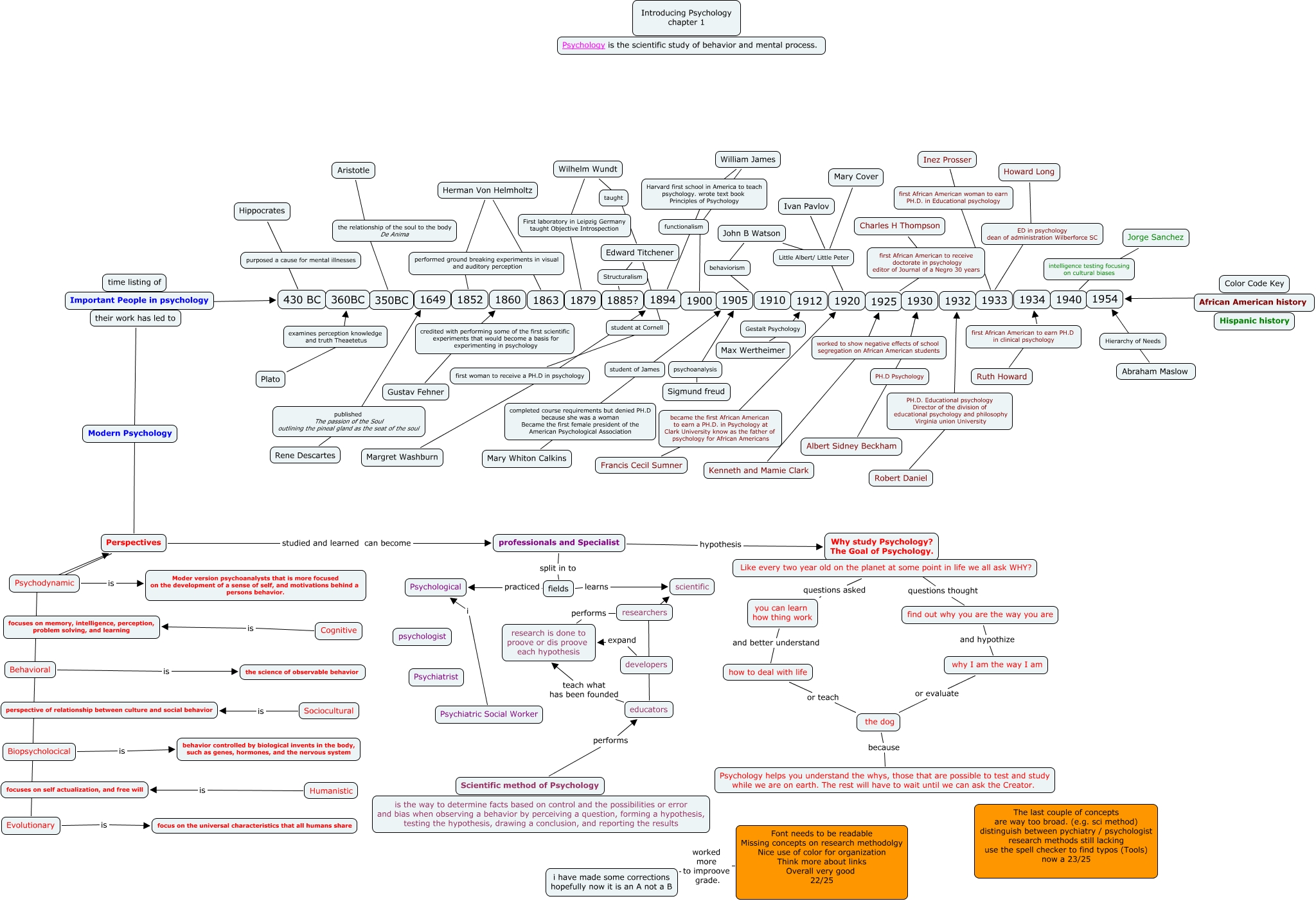 This Concept Map, created with IHMC CmapTools, has information related to: chapter 1 cmap Andrea Johnson 23, Cognitive is ????, Evolutionary ???? Perspectives, Like every two year old on the planet at some point in life we all ask WHY? questions asked you can learn how thing work, Wilhelm Wundt ???? 1879, Herman Von Helmholtz ???? 1863, Mary Whiton Calkins ???? 1905, Aristotle ???? 350BC, John B Watson ???? 1905, Herman Von Helmholtz ???? 1852, Wilhelm Wundt ???? Edward Titchener, Max Wertheimer ???? 1912, Abraham Maslow ???? 1954, their work has led to ???? Perspectives, Psychodynamic is Moder version psychoanalysts that is more focused on the development of a sense of self, and motivations behind a persons behavior., Howard Long ???? 1933, professionals and Specialist hypothesis Why study Psychology? The Goal of Psychology., Plato 360BC, John B Watson ???? 1920, Perspectives ???? Psychodynamic, find out why you are the way you are and hypothize why I am the way I am