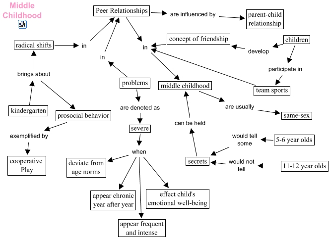 peer relationships, 11-12 year olds would not tell secrets, Peer Relationships in middle childhood, problems are denoted as severe, concept of friendship in middle childhood, children participate in team sports, middle childhood are usually same-sex, Peer Relationships are influenced by parent-child relationship, severe when appear frequent and intense, problems in Peer Relationships, 5-6 year olds would tell some secrets