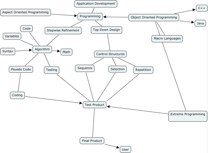 This Concept Map, created with IHMC CmapTools, has information related to: BRIAN, Repetition Test Product, Sequence Test Product, Top Down Design Control Structures, Object Oriented Programming C++, Object Oriented Programming Programming, Test Product Final Product, Psuedo Code Coding, Object Oriented Programming Macro Languages, Testing Test Product, Control Structures Sequence, Control Structures Selection, Programming Stepwise Refinement, Code Algorithm, Algorithm Testing, Final Product User, Object Oriented Programming Extreme Programming, Algorithm Math, Selection Test Product, Stepwise Refinement Algorithm, Programming Top Down Design