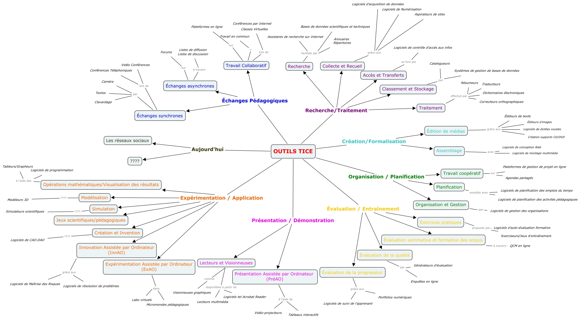 Cette carte de concepts créée avec IHMC CmapTools traite de: outils_tice_TXTGauthier_Morgane_Guedes, Travail Collaboratif = Travail en commun, Dictionnaires électroniques effectué par Traitement, Logiciels de planification des activités pédagogiques possible avec Logiciels de planification des emplois du temps, Logiciels tel Acrobat Reader disponibles à partir de Lecteurs multimédia, Modélisation ???? Modéleurs 3D, OUTILS TICE Organisation / Planification Planification, OUTILS TICE Organisation / Planification Travail coopératif, Logiciels de Numérisation grâce aux Logiciels d'acquisition de données, Tableaux interactifs à l'aide de Vidéo-projecteurs, Expérimentation Assistée par Ordinateur (ExAO) dans Labo virtuels, Éditeurs d'images grâce aux Éditeurs de texte, Lecteurs et Visionneuses disponibles à partir de Lecteurs multimédia, OUTILS TICE Échanges Pédagogiques Travail Collaboratif, OUTILS TICE Recherche/Traitement Accès et Transferts, OUTILS TICE Recherche/Traitement Traitement, OUTILS TICE Présentation / Démonstration Lecteurs et Visionneuses, Bases de données scientifiques et techniques facilitée par Assistants de recherche sur Internet, OUTILS TICE Recherche/Traitement Classement et Stockage, Visionneuses graphiques comme Lecteurs et Visionneuses, Portfolios numériques grâce aux Évaluation de la progression