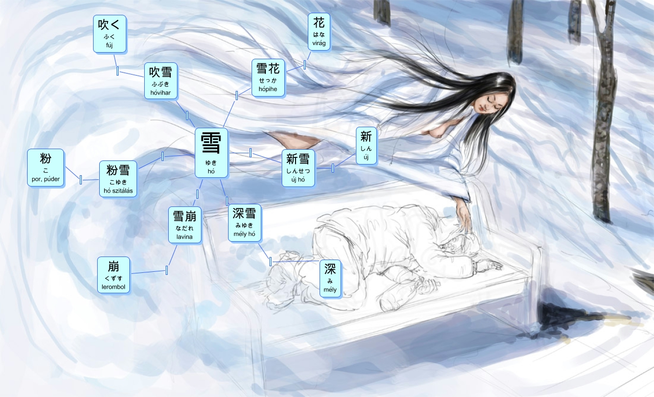 This Concept Map, created with IHMC CmapTools, has information related to: 雪_SZSZ_VH_20121004, 粉雪 こゆき hó szitálás 粉 こ por, púder, 吹雪 ふぶき hóvihar 吹く ふく fúj, 雪 ゆき hó 新雪 しんせつ új hó, 雪 ゆき hó 吹雪 ふぶき hóvihar, 雪 ゆき hó 雪崩 なだれ lavina, 雪 ゆき hó 深雪 みゆき mély hó, 深雪 みゆき mély hó 深 み mély, 雪 ゆき hó 粉雪 こゆき hó szitálás, 雪崩 なだれ lavina 崩 くずす lerombol, 雪 ゆき hó 雪花 せっか hópihe, 雪花 せっか hópihe 花 はな virág, 新雪 しんせつ új hó 新 しん új