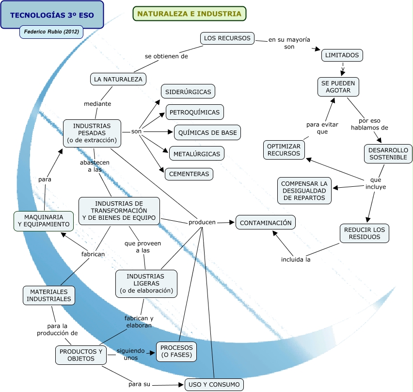 Este Cmap, tiene información relacionada con: Naturaleza e industria, INDUSTRIAS PESADAS (o de extracción) son PETROQUÍMICAS, INDUSTRIAS PESADAS (o de extracción) producen CONTAMINACIÓN, LOS RECURSOS se obtienen de LA NATURALEZA, DESARROLLO SOSTENIBLE que incluye REDUCIR LOS RESIDUOS, INDUSTRIAS PESADAS (o de extracción) son CEMENTERAS, INDUSTRIAS PESADAS (o de extracción) son METALÚRGICAS, USO Y CONSUMO producen CONTAMINACIÓN, INDUSTRIAS DE TRANSFORMACIÓN Y DE BIENES DE EQUIPO fabrican MATERIALES INDUSTRIALES, PRODUCTOS Y OBJETOS siguiendo unos PROCESOS (O FASES), INDUSTRIAS DE TRANSFORMACIÓN Y DE BIENES DE EQUIPO que proveen a las INDUSTRIAS LIGERAS (o de elaboración), OPTIMIZAR RECURSOS para evitar que SE PUEDEN AGOTAR, LOS RECURSOS en su mayoría son LIMITADOS, INDUSTRIAS LIGERAS (o de elaboración) producen CONTAMINACIÓN, INDUSTRIAS DE TRANSFORMACIÓN Y DE BIENES DE EQUIPO fabrican MAQUINARIA Y EQUIPAMIENTO, LA NATURALEZA mediante INDUSTRIAS PESADAS (o de extracción), INDUSTRIAS LIGERAS (o de elaboración) fabrican y elaboran PRODUCTOS Y OBJETOS, PROCESOS (O FASES) producen CONTAMINACIÓN, REDUCIR LOS RESIDUOS incluida la CONTAMINACIÓN, INDUSTRIAS DE TRANSFORMACIÓN Y DE BIENES DE EQUIPO producen CONTAMINACIÓN, MATERIALES INDUSTRIALES para la producción de PRODUCTOS Y OBJETOS